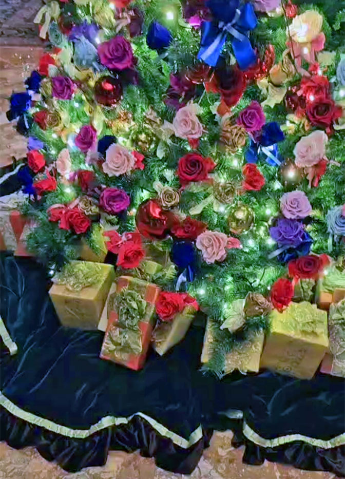 In 2025 New Version Rose Christmas Trees at Recepition and Front Lobby in Ritz-Carlton Osaka we decorate 2000 of Preseved Rose Christmas Tree in this year Deep we decorated to add Blue roses Accents with Red,Pink Purple,gold Roses. And Red Rose Valentine! Coming soon
